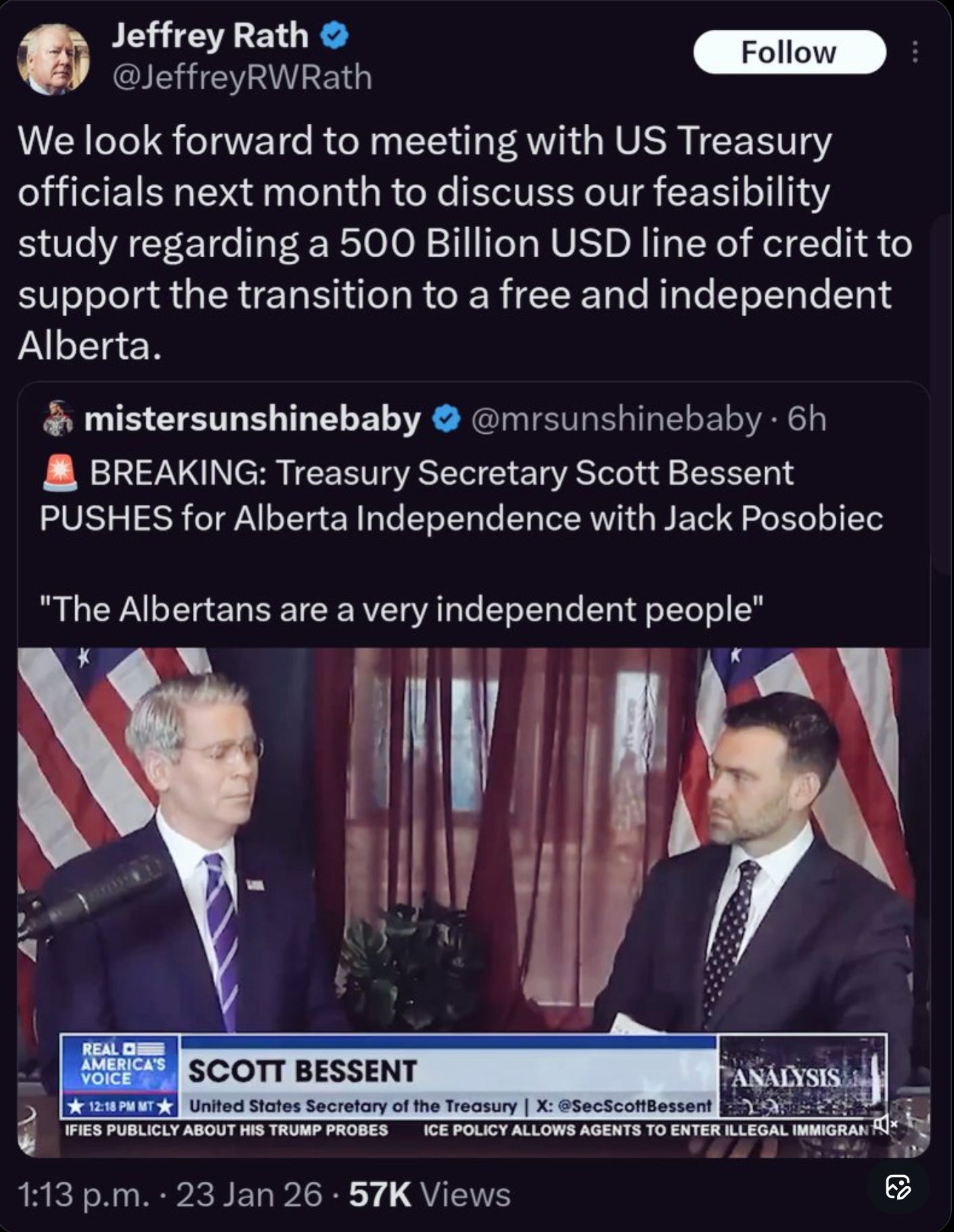 So the idea that Alberta will somehow be free of US control is blind stupid and should enrage every thinking person who is forced to reason with it. The separatists can say what they want about independence after their secret meetings with senior Trump officials, and their deals to leverage Alberta’s oil reserves for a $500 Billion loan and pension roll overs, but 51st state this province will become as soon as those hooks are in.