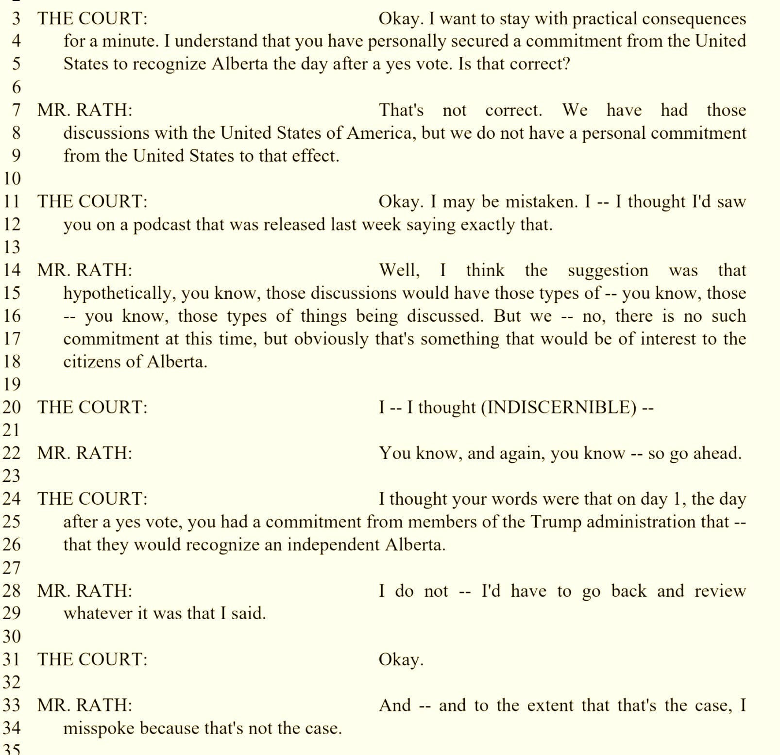 It is worth noting that the lawyer representing the APP in the hearing before Justice Feasby was none other than Jeff Rath their main spokesperson, (you know that big guy with the hat who looks like Boss Hog.) During the hearing Justice Feasby specifically asked Rath about statements he (Rath) had made regarding assurances that he (Rath) and the APP had secured in Washington from the Trump Administration about the United States recognizing Alberta as a sovereign entity immediately following a successful referendum.